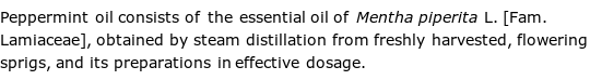 Peppermint oil (Menthae piperitae aetheroleum) Published March 13, 1986; Revised March 13, 1990, September 1, 1990, and July 14, 1993. List of German Commission E Monographs (Phytotherapy)