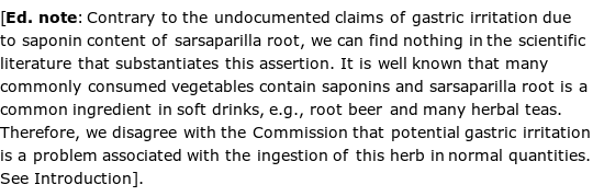 Sarsaparilla root (Sarsaparillae radix) Published September 1, 1990. List of German Commission E Monographs (Phytotherapy)