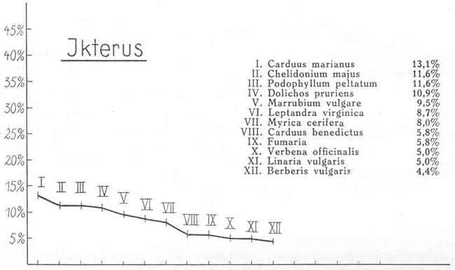 Bei Versuchen, die mit der Tinktur von Carduus marianus angestellt wurden, konnten nach Westphal9 erst Hemmung des Gallenabflusses durch Motilitätshemmung, dann starke Anregung festgestellt werden.